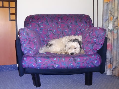 Im Hotel habe ich sogar mein eigenes Sofa zum schlafen.